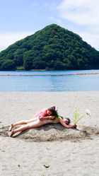 淺蟲海灘位於陸奧灣之濱,與海上的湯之島遙相對望,長年被視為具有靈性象徵的聖地。青森的自然環境、島嶼信仰與當地人與海的共生關係,為此作品賦予了深層的文化與精神背景。